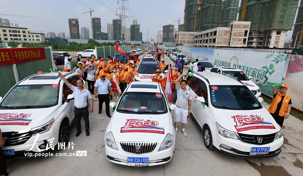 隨著“高考”臨近,安徽省阜陽市舉辦的兩場愛心送考活動都正式啟動,現場吸引了來自當地的近650多輛出租車司機和私家車主報名參與,他們統一領取了綠絲帶以及愛心送考車貼,準備在今年高考期間將為廣大考生提供免費送考服務。王彪/人民圖片