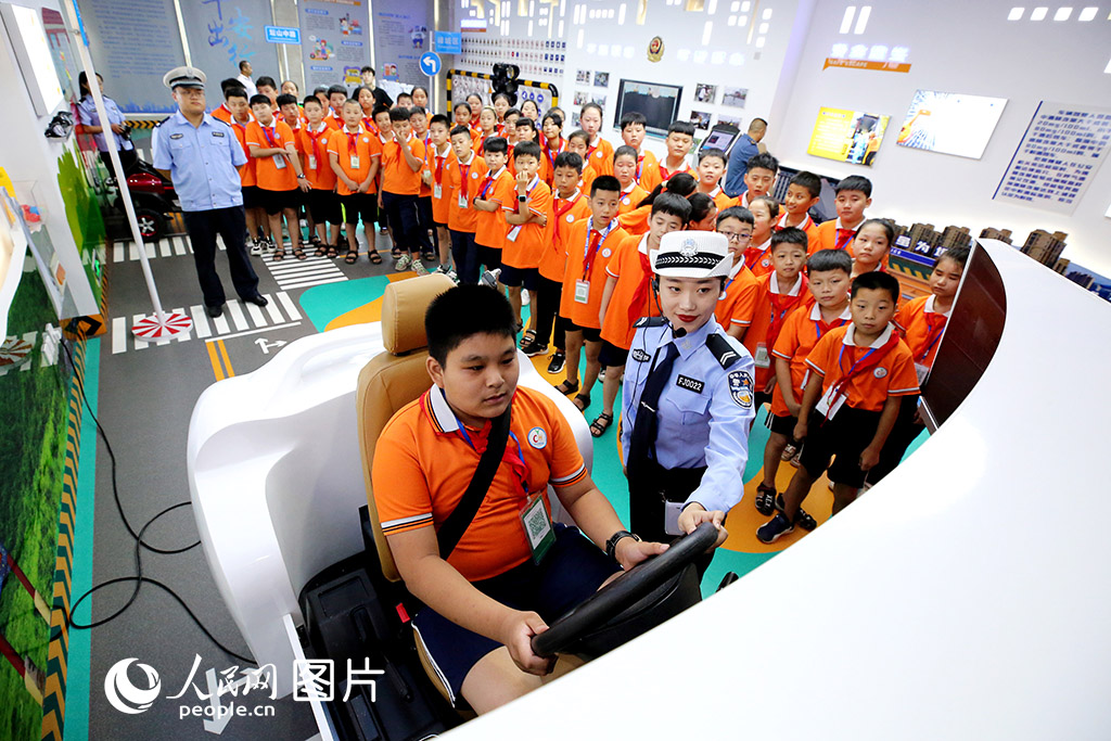 2020年9月1日,是山東省棗莊市中小學校新學期開學第一天,棗莊市荀子學校組織學生走進棗莊市公安局嶧城分局交通警察大隊,開展以“進警營 學安全”為主題的開學第一課活動。學生們在交警的帶領下通過學習交通安全知識、模擬體驗等,提高交通安全意識,確保出行安全。孫中喆/攝