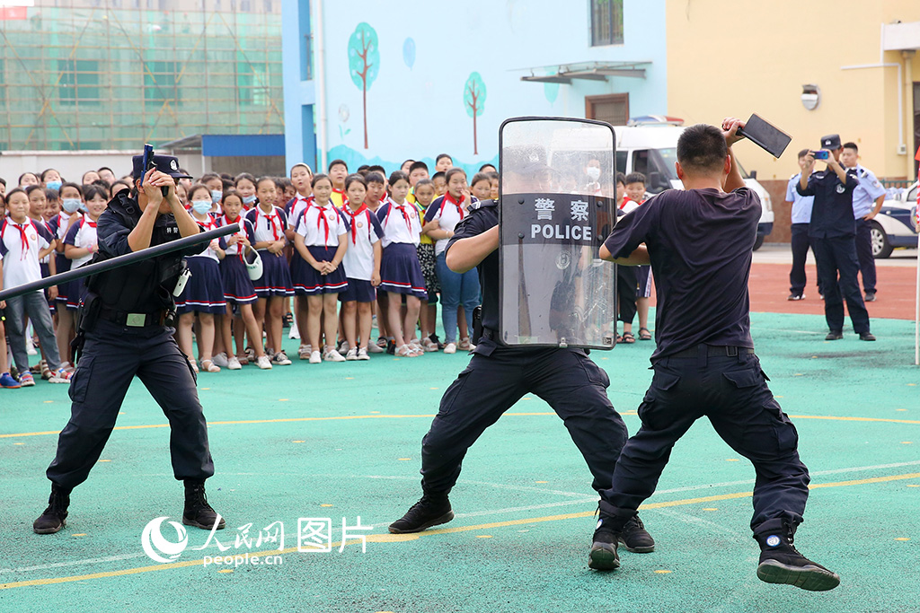 2020年9月1日,安徽省淮北市濉溪縣公安局組織民警走進濉溪縣城關中心學校第四小學開展“開學第一課講反恐知識”活動。通過開展反恐應急處置演練及反恐知識講座,為該校全體師生上了一堂精彩的安全教育課,增強師生的反恐意識,掌握和提高反恐防恐知識與能力,讓校園更安全。黃鶴鳴/攝