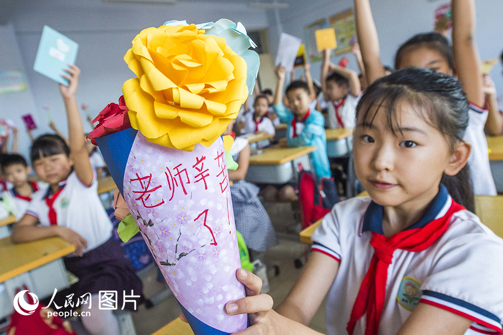 在三十六個教師節來臨之際,江蘇連云港市黃海路小學舉行主題活動,祝福老師,迎接教師節。 司偉/攝