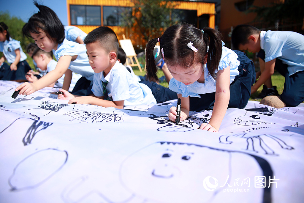 2020年9月8日,在第三十六個教師節即將到來之際,浙江省東陽市實驗幼兒園舉行了“老師,給您畫幅畫”活動。現場,10米長的畫布上趴滿了聚精會神繪畫的小朋友。該園希望通過舉辦本次活動,讓小朋友知道9月10日是教師節,用自己的方式畫下老師最美的樣子,以此營造一個尊師重教的教學氛圍。 胡揚輝/攝