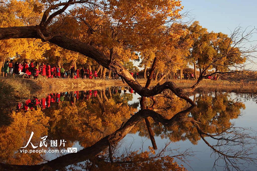 2020年10月10日,內蒙古阿拉善盟額濟納黑城弱水胡楊風景區風景宛如畫 、游人如織。丁幫學/攝