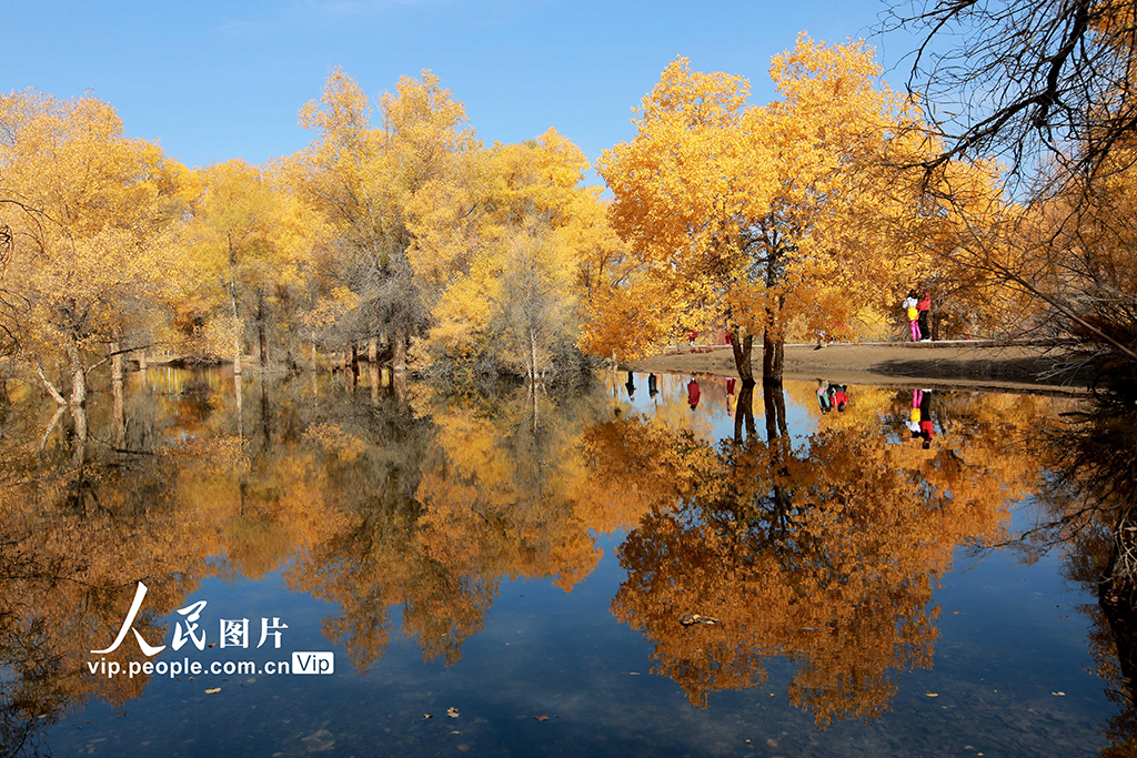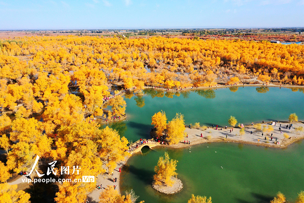 10月11日,甘肅省酒泉市金塔縣的沙漠胡楊林景區金黃色的胡楊進入最佳觀賞期,全國各地的游客慕名而來,飽覽沙漠胡楊綺麗景色。金塔縣沙漠胡楊林是全省規模最大的人工種植林,每年金秋十月,在藍天碧水的映襯下,胡楊林金黃透亮、魅力盡顯,宛如大漠童話世界。成林/攝