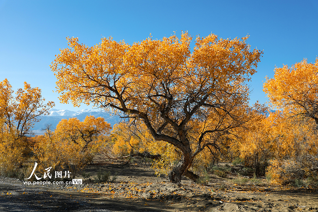 金秋時節,新疆精河縣托托鎮的胡楊林迎來一年中最美麗的時刻,金黃色的胡楊在藍天和雪山的映襯下,格外美麗。劉新佳/攝