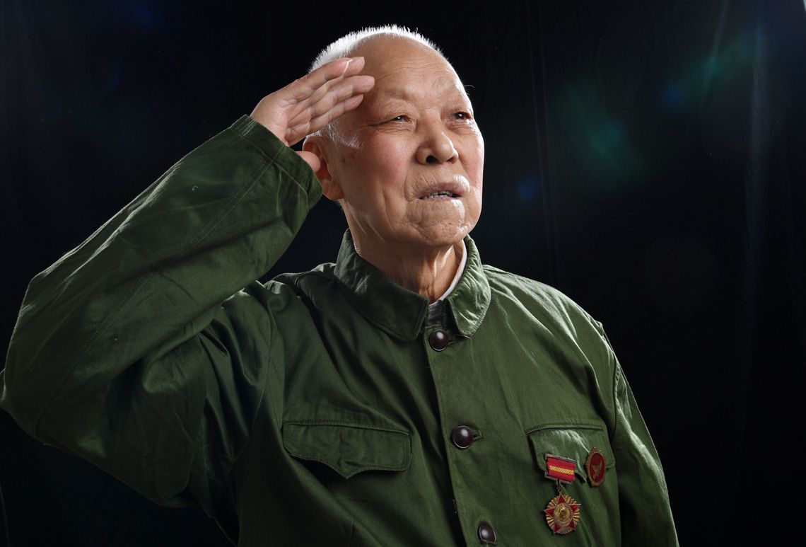 在安徽省銅陵市拍攝的志愿軍老戰士吳定開(10月10日攝)。新華社記者 張端 攝