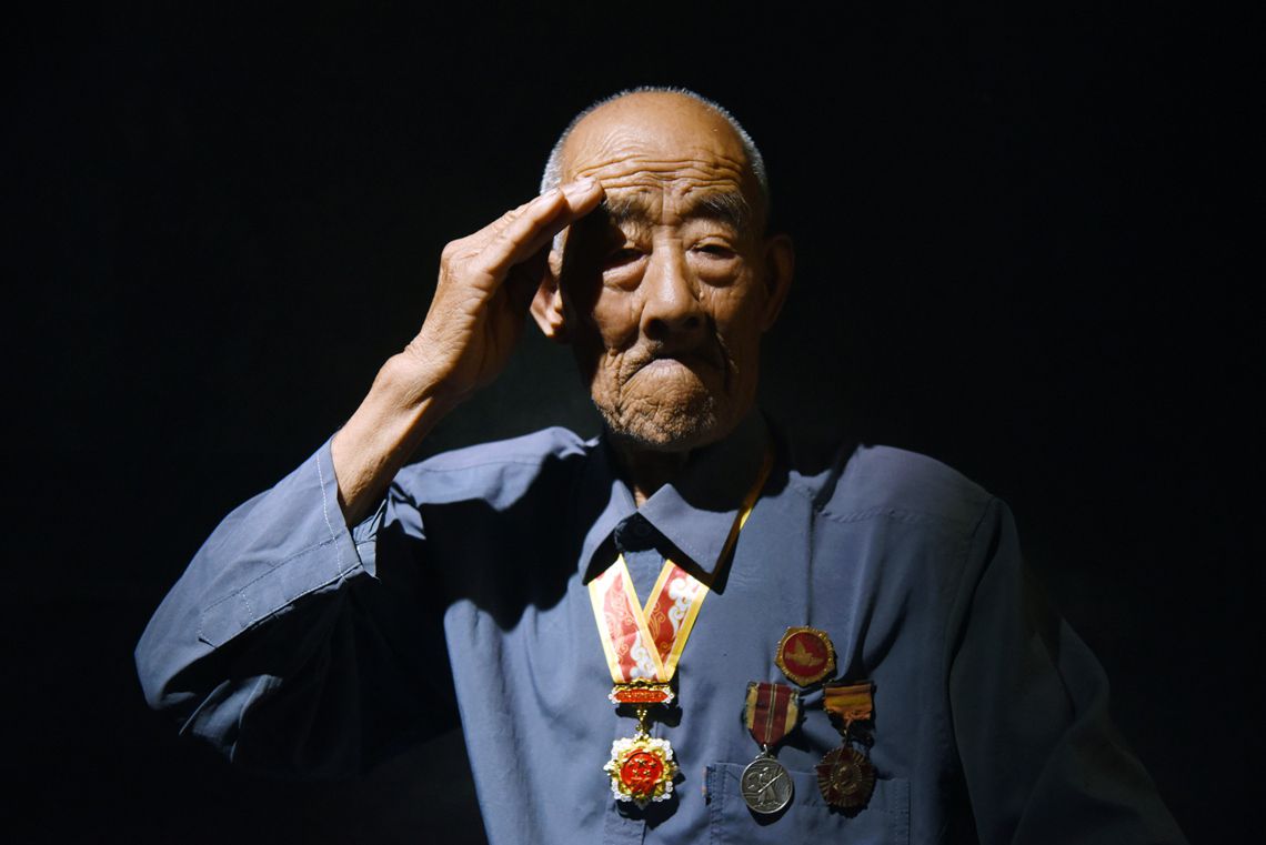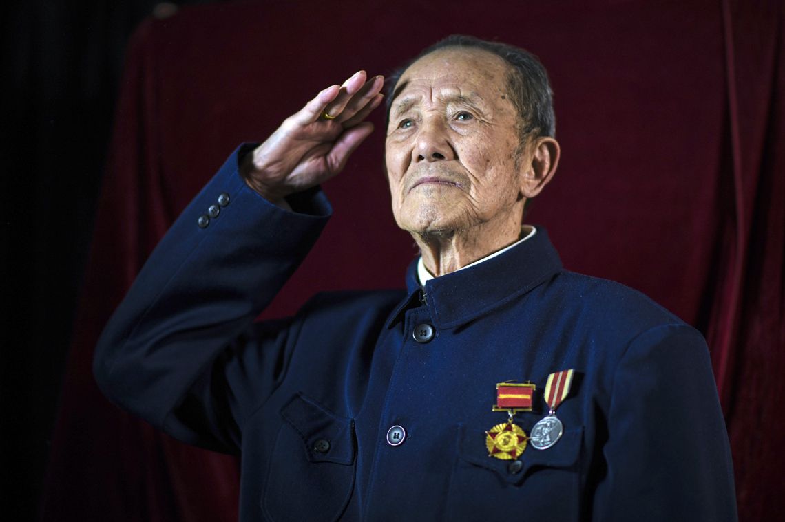 在北京市拍攝的志愿軍老戰士周有春(9月18日攝)。新華社記者 李賀 攝