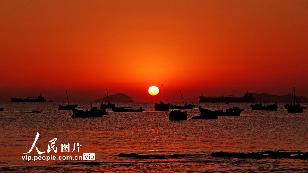 2021年1月1日,遼寧大連蟹子灣海濱公園新年日出。劉德斌攝(人民圖片網)