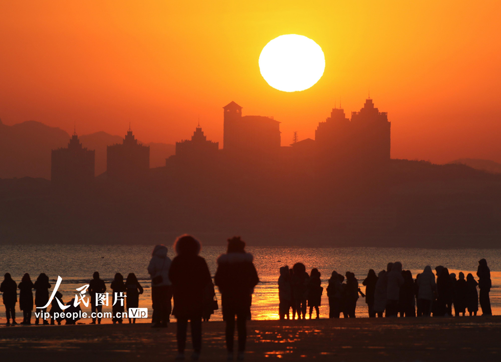 2021年1月1日,新年第一天,山東煙臺的市民和游客來到海邊,觀旭日東升,迎新年到來。唐克攝(人民圖片網)