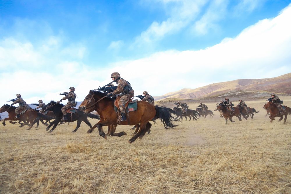 1月5日,陸軍第76集團軍某旅騎兵連在青藏高原腹地開展騎兵綜合演練。新華社發(文明 攝)
