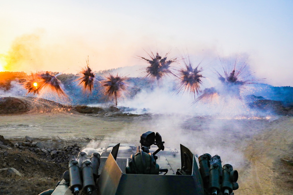 1月4日,陸軍第72集團軍某旅組織某型輪式裝甲輸送車進行車載煙幕實彈射擊訓練。新華社發(張毛 攝)