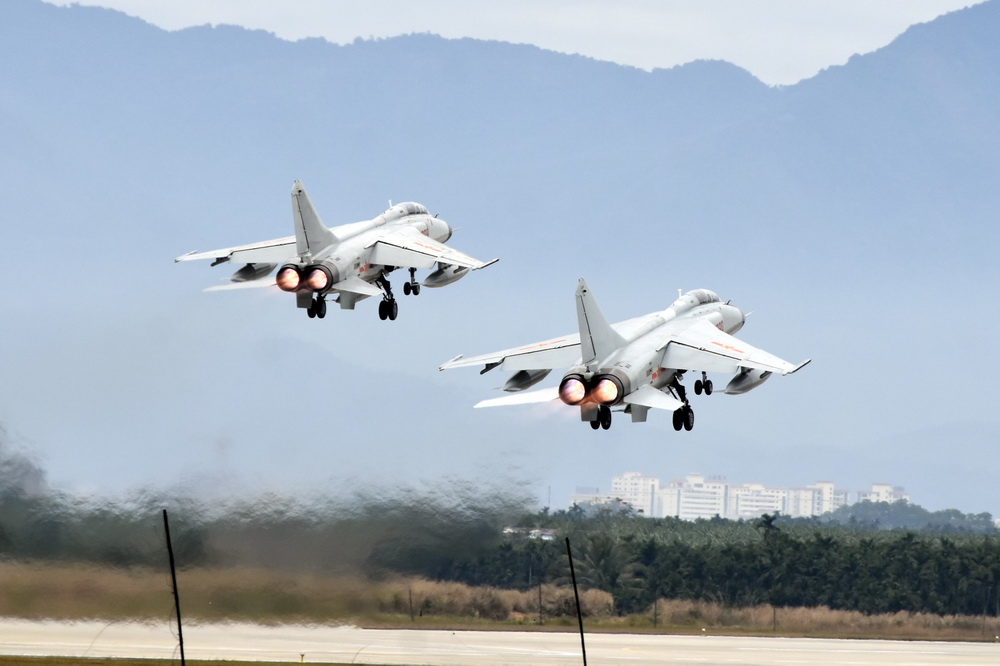 1月5日,南部戰區海軍航空兵某旅組織新年度首次飛行訓練。這是雙機起飛。新華社發(賴偉 攝)