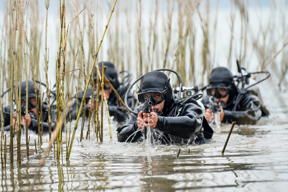 1月4日,海軍陸戰隊某旅特戰隊員在訓練場上進行特種射擊訓練。新華社發(關亞斐 攝)