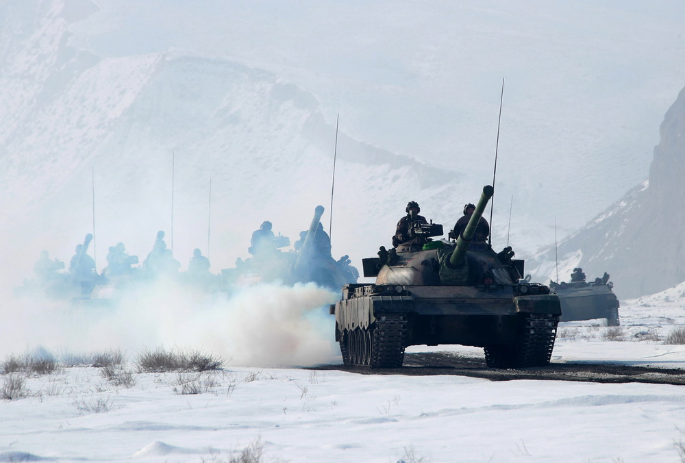 1月4日,新疆軍區某團在嚴寒條件下,組織裝甲分隊展開機動協同訓練。新華社發(袁凱 攝)