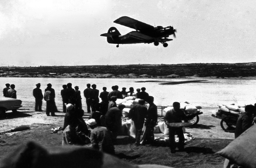 1982年5月,空軍某團運-5飛機從西北某機場起飛,飛赴甘肅省臨夏回族自治州太子山地區(資料圖片)。新華社發