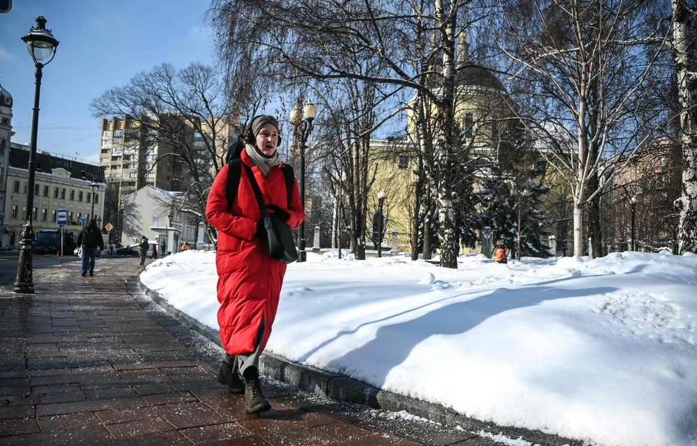 2月18日,一名女子走在雪后的俄羅斯莫斯科街頭。新華社/法新