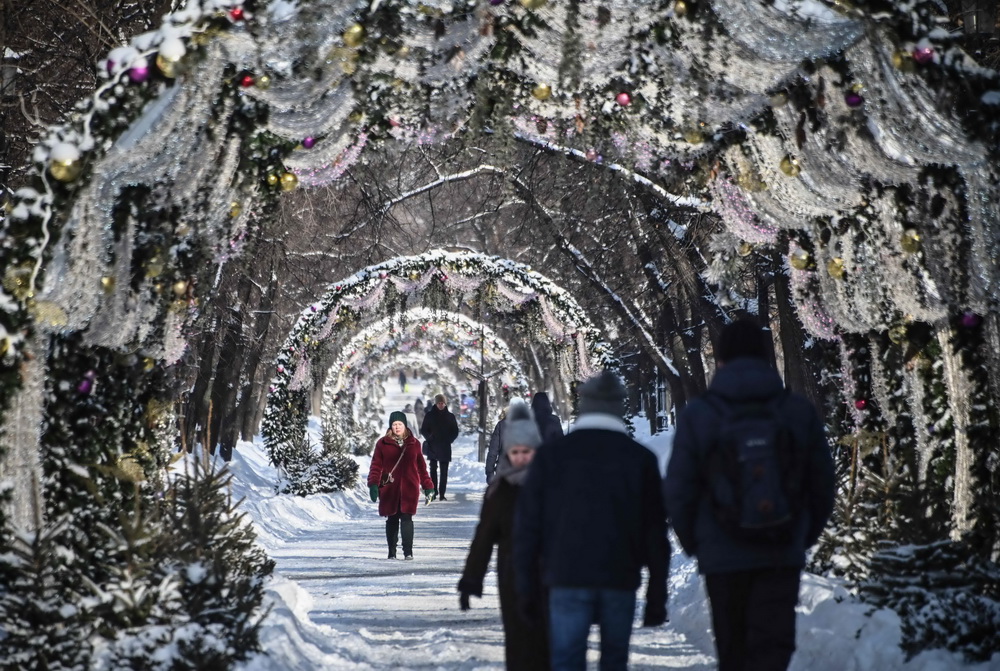 2月18日,人們走在雪后的俄羅斯莫斯科街頭。新華社/法新
