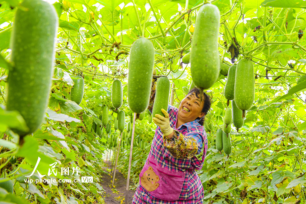 2021年4月19日,廣西壯族自治區北海市合浦縣廉州鎮楊家山村村民在地里采摘豐收的毛節瓜上市。林啟波攝(人民圖片網)