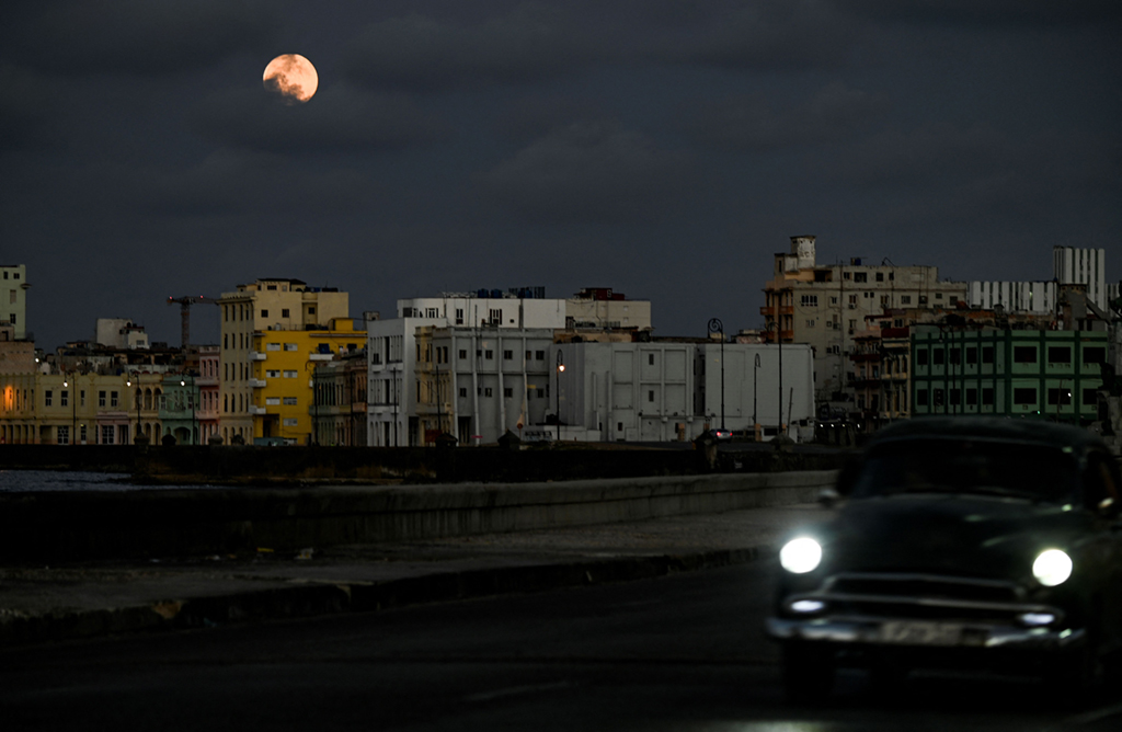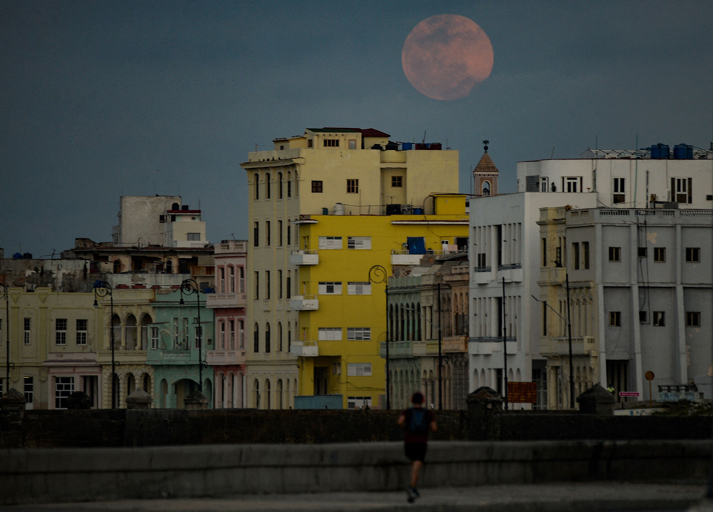 4月26日在古巴首都哈瓦那拍攝的滿月。新華社/法新