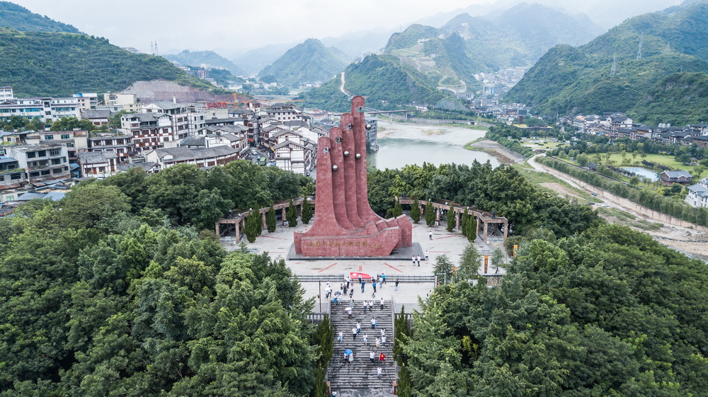 游客在仁懷市紅軍四渡赤水紀念園參觀(2019年7月5日攝,無人機照片)。新華社記者 陶亮 攝