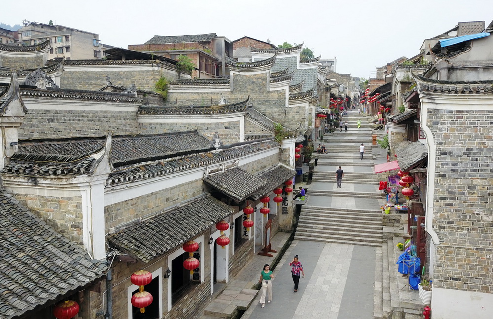 游客在貴州省黎平會議會址前參觀(2019年7月2日攝,無人機照片)。新華社記者 楊文斌 攝