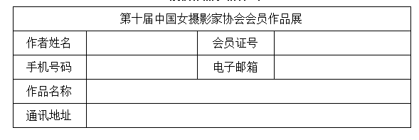 2.題材、風格不限,彩色、黑白、單幅、組照均可。每幅作品須填寫作者姓名、會員證號、手機號碼、電子郵箱、作品名稱、通訊地址(后附投稿作品表格下載鏈接,或前往中國女攝影家協會網站下載);