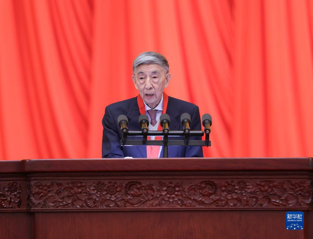 11月3日上午,中共中央、國務院在北京隆重舉行國家科學技術獎勵大會。獲得2020年度國家最高科學技術獎的清華大學王大中院士代表全體獲獎人員發言。新華社記者 龐興雷 攝