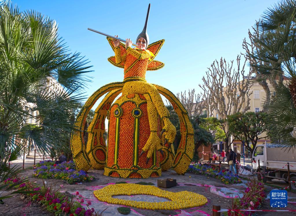 這是2月9日在法國南部小城芒通拍攝的檸檬節藝術裝置。