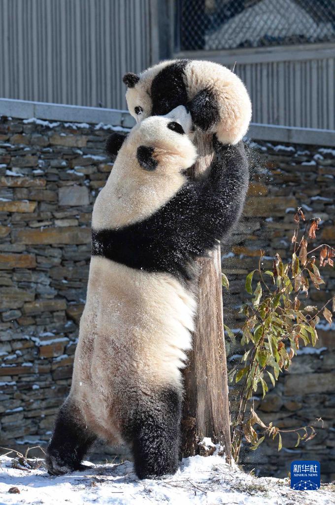 新春伊始,生活在中國大熊貓保護研究中心臥龍神樹坪基地內的大熊貓們享受著冰雪帶來的歡樂。