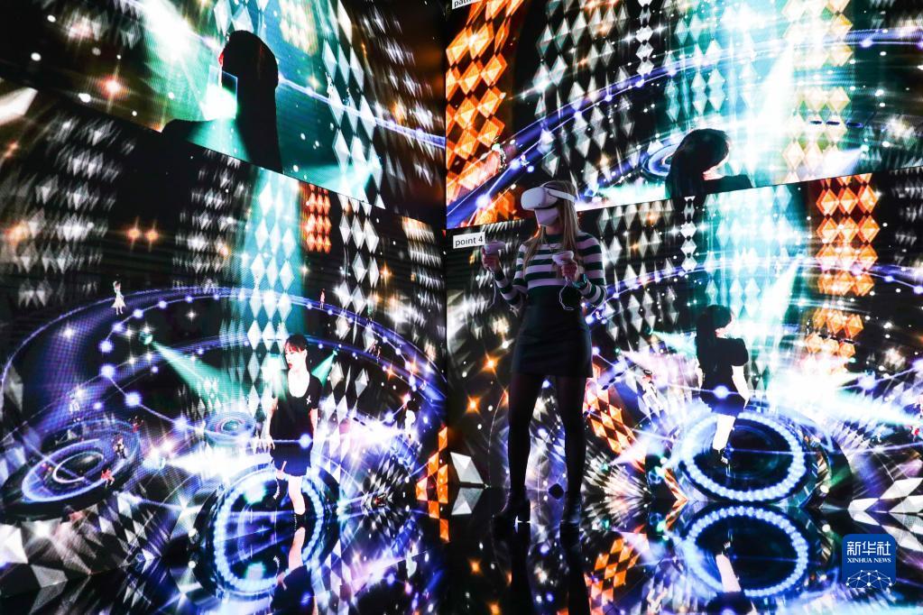 2月28日,一名女子在西班牙巴塞羅那2022世界移動通信大會上通過虛擬現實技術體驗“元宇宙”。