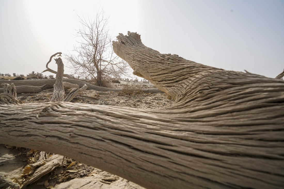 在新疆塔里木河流域,一棵枯死的胡楊又長出了新枝(2月20日攝)。新華社記者 趙戈 攝