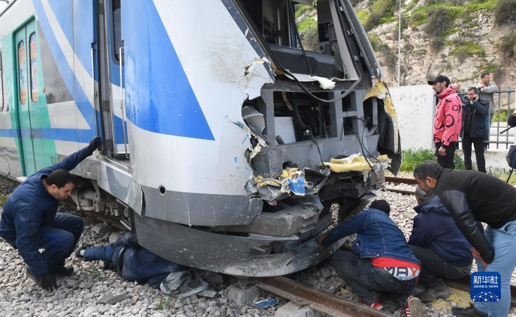 突尼斯首都突尼斯市南郊21日早晨發生兩列列車相撞事故,造成90多人受傷。新華社發(阿代爾攝)