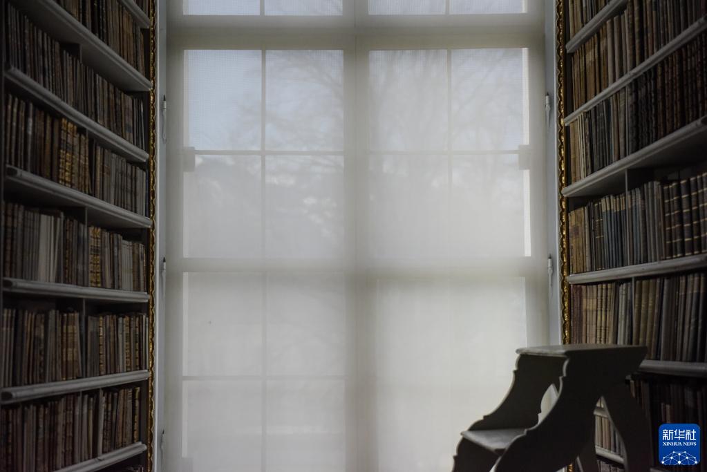 這是4月13日拍攝的奧地利阿德蒙特修道院圖書館大廳一角。