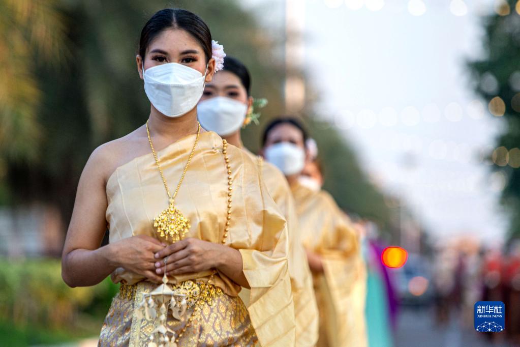 每年4月13日至15日是泰國傳統新年宋干節,人們會以互相潑水的方式表達迎新祝福。受新冠疫情影響,泰國已連續第三年取消街頭潑水慶;顒,泰國旅游局在大城府改為舉辦街頭巡游活動慶祝宋干節。新華社記者 王騰 攝