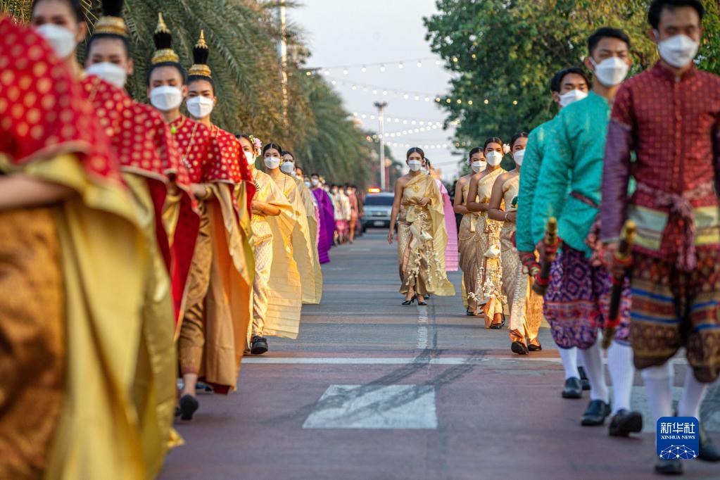 每年4月13日至15日是泰國傳統新年宋干節,人們會以互相潑水的方式表達迎新祝福。受新冠疫情影響,泰國已連續第三年取消街頭潑水慶;顒,泰國旅游局在大城府改為舉辦街頭巡游活動慶祝宋干節。新華社記者 王騰 攝