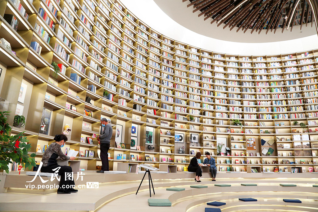 2022年4月21日,幾位市民正在北京建工“璟玥林汐美學藝術館”閱讀!笆澜缱x書日”到來之際,不少市民走進位于北京懷柔北京建工“璟玥林汐美學藝術館”書林,在安靜寬敞的空間享受讀書的快樂。卜向東攝(人民圖片網)