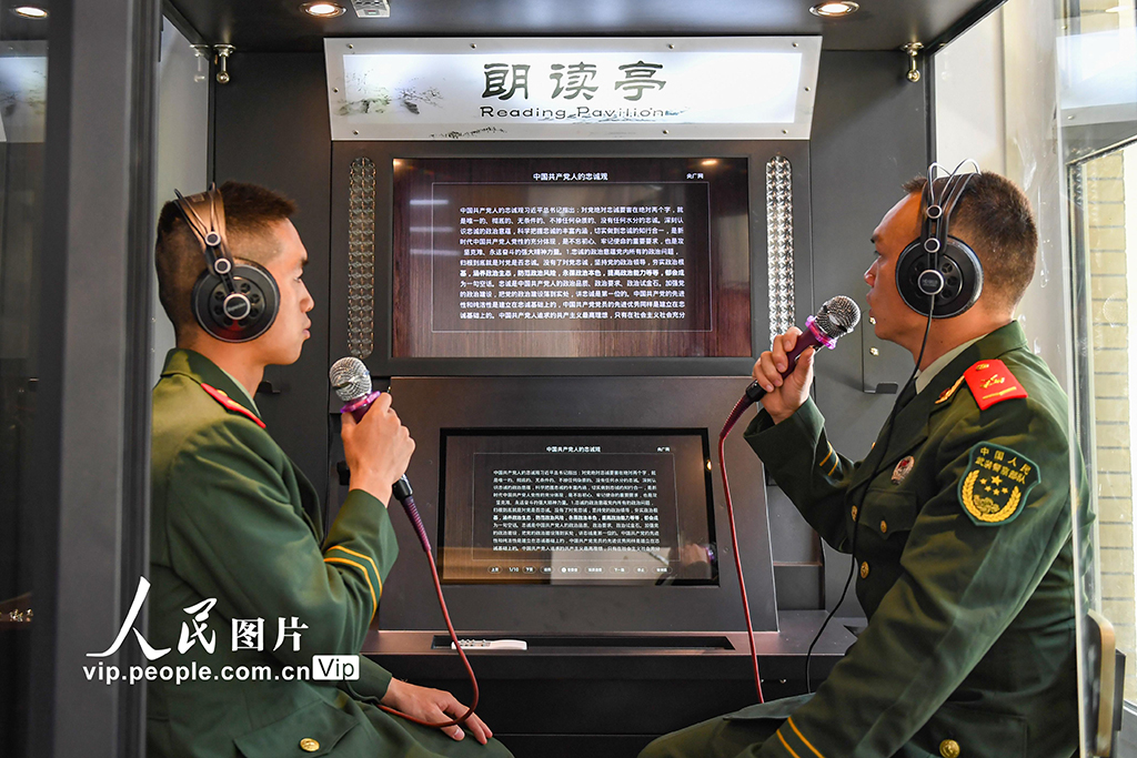 2022年4月21日,在第27個“世界讀書日”來臨之際,武警重慶總隊機動支隊開展群眾性讀書活動,在官兵中興起讀書學習成才、鑄魂礪志強軍熱潮。王肸攝(人民圖片網)