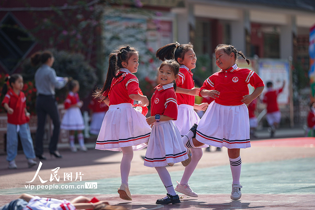 開學第一天,貴州黔東南苗族侗族自治州丹寨縣城關第二小學學生課間在操場做游戲。黃曉海攝(人民圖片網)