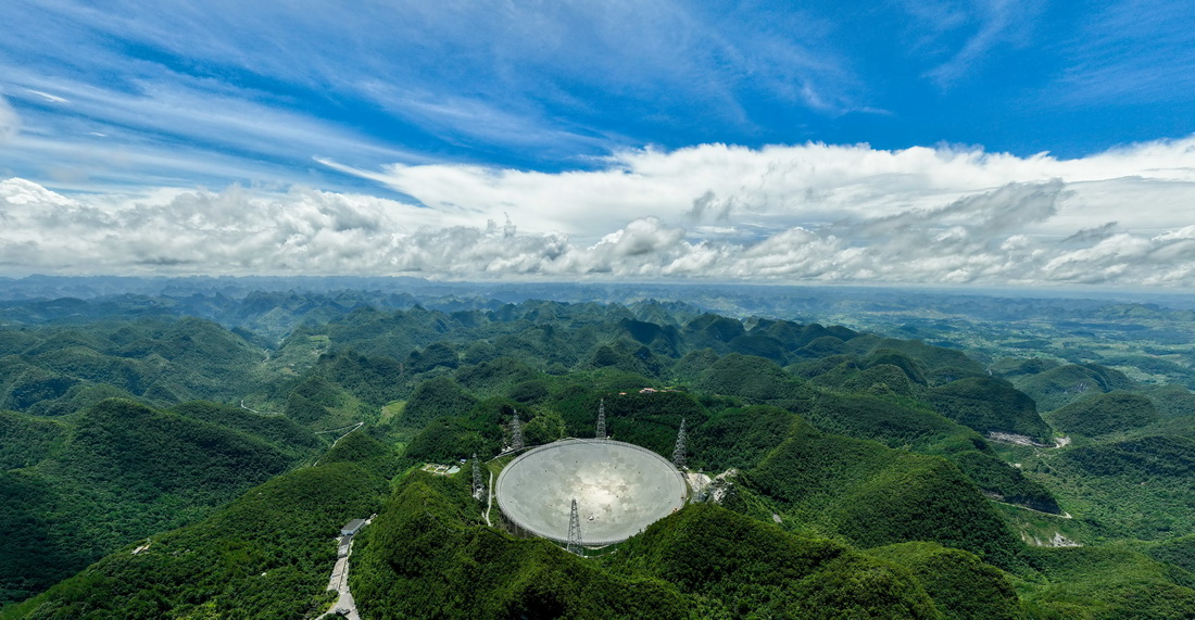 這是“中國天眼”全景(2022年7月21日攝,維護保養期間拍攝,無人機照片)。 新華社記者 歐東衢 攝