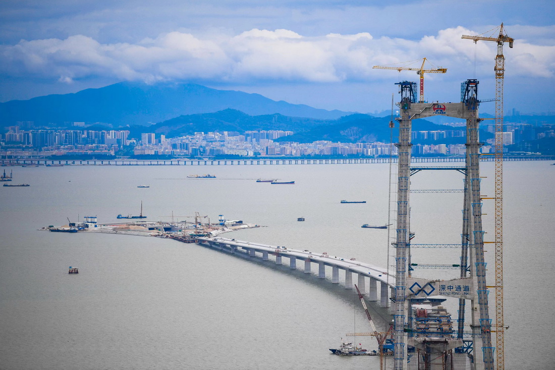 秋日的伶仃洋,粵港澳大灣區核心交通樞紐深中通道島隧工程施工海域一片熱火朝天的景象。這個集“橋、島、隧、水下互通”于一體的世界級超級工程,將在兩年后連通隔海相望的中山市和深圳市,勾連起粵港澳大灣區的生機與活力。