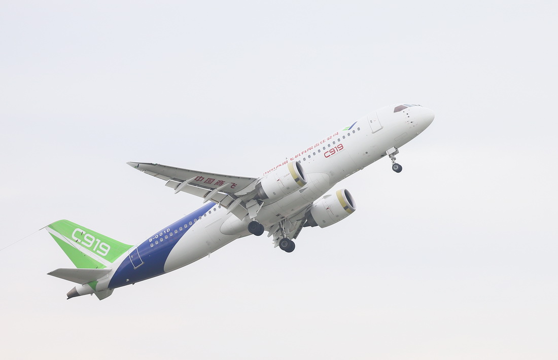 這是2022年7月18日在陜西省蒲城縣拍攝的C919大飛機的試飛機。新華社記者 丁汀 攝