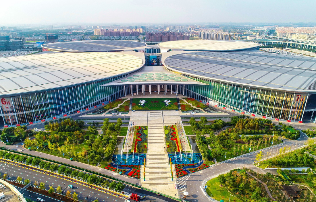 2021年10月31日拍攝的國家會展中心(上海)(無人機照片)。新華社發(蔣中呈 攝)