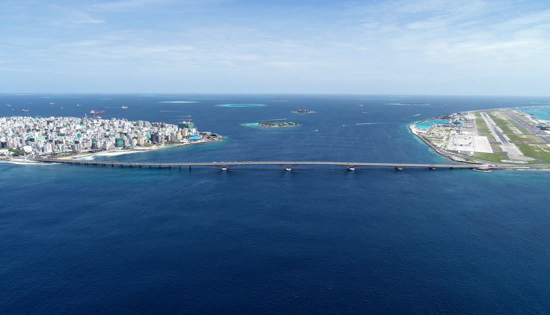這是馬爾代夫連接首都馬累和機場島的中馬友誼大橋(2019年8月30日攝,無人機照片)。新華社發(王明亮攝)