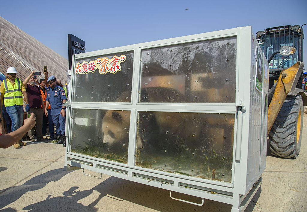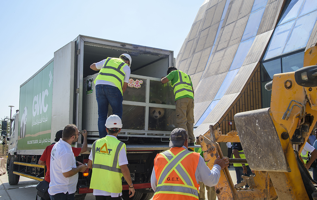 10月19日,大熊貓抵達卡塔爾首都多哈的豪爾熊貓館。新華社發(尼庫攝)