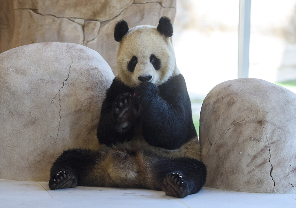 這是10月19日在卡塔爾首都多哈的豪爾熊貓館拍攝的大熊貓。新華社發(尼庫攝)