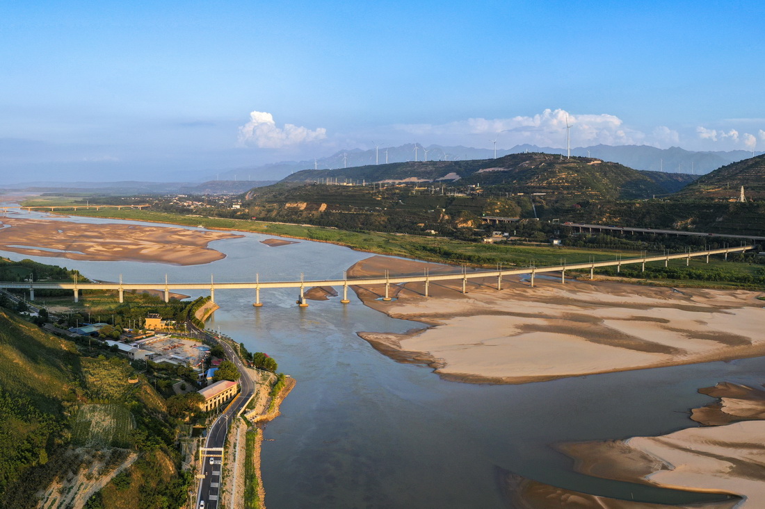 山西省運城市芮城縣風陵渡黃河大橋(2022年6月30日攝,無人機照片)。新華社發(肖永杰 攝)