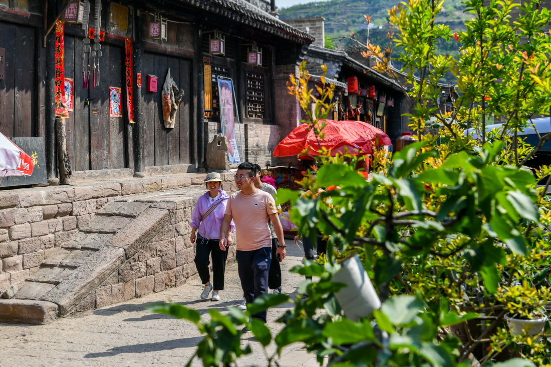 游客在被譽為“九曲黃河第一鎮”的山西省呂梁市臨縣磧口古鎮游玩(2022年5月25日攝)。新華社記者 曹陽 攝