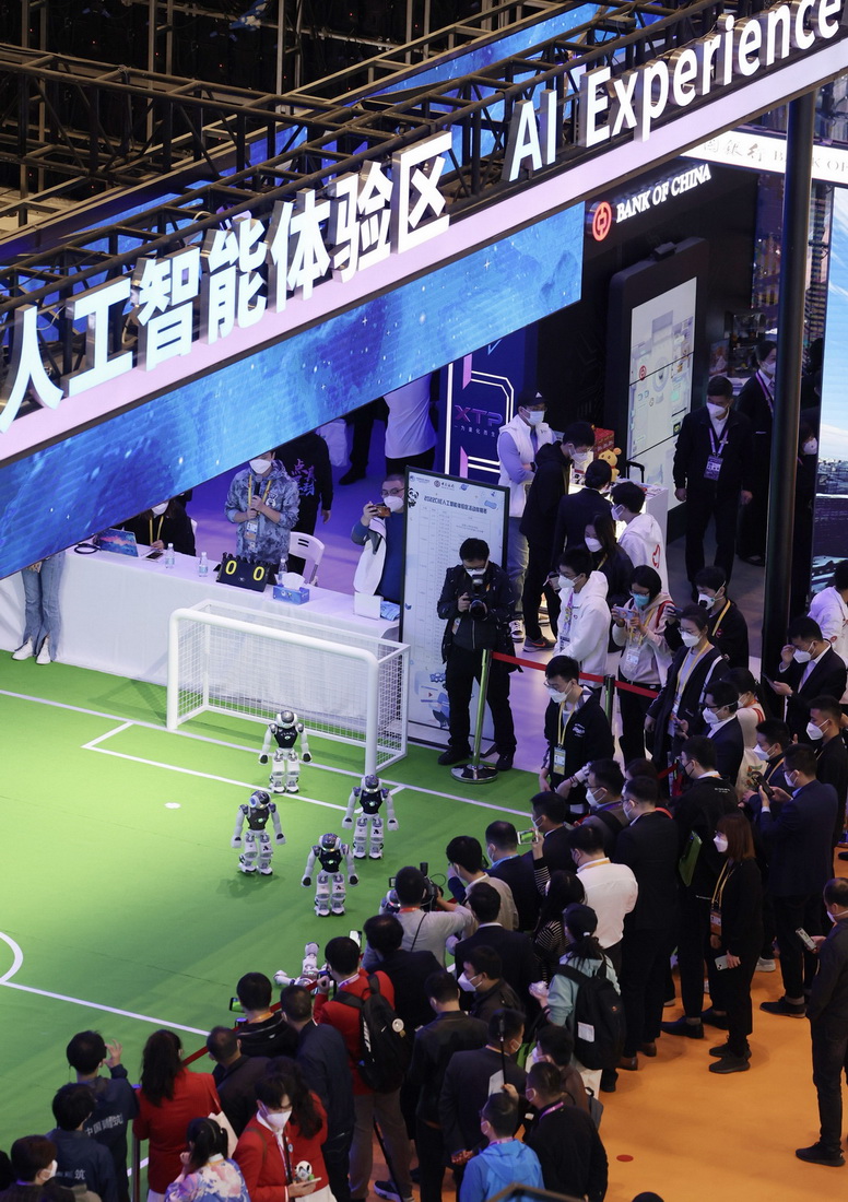 2022年11月5日,參觀者在第五屆進博會人工智能專區觀看機器人表演。新華社記者 金立旺 攝