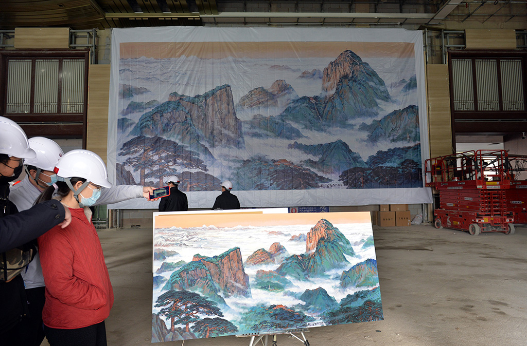 3月4日,中央總館一號樓,美術作品《山河攬勝》草稿圖實景展示。人民網記者 陳斌攝