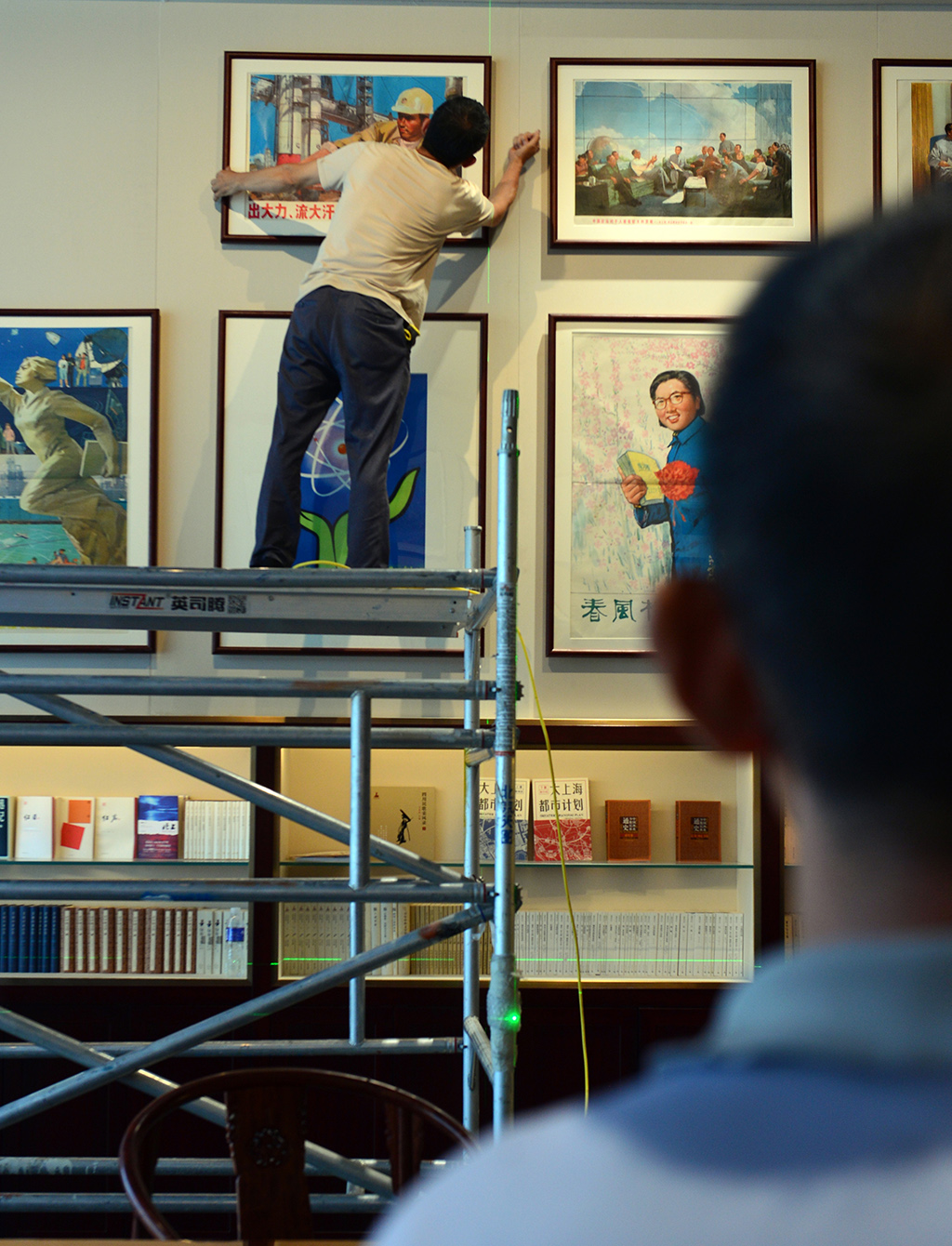 9月27日晚,工作人員為國家書房里的3萬余冊經典著作通宵編目并優化展陳。人民網記者 陳斌攝