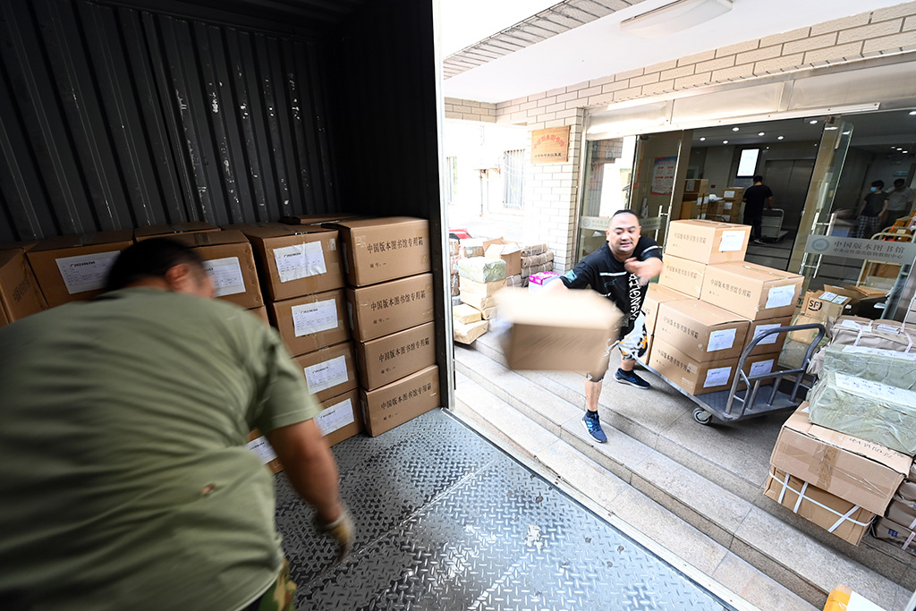 9月15日,工作人員正在轉運各出版單位送交的出版物。人民網記者 陳斌攝